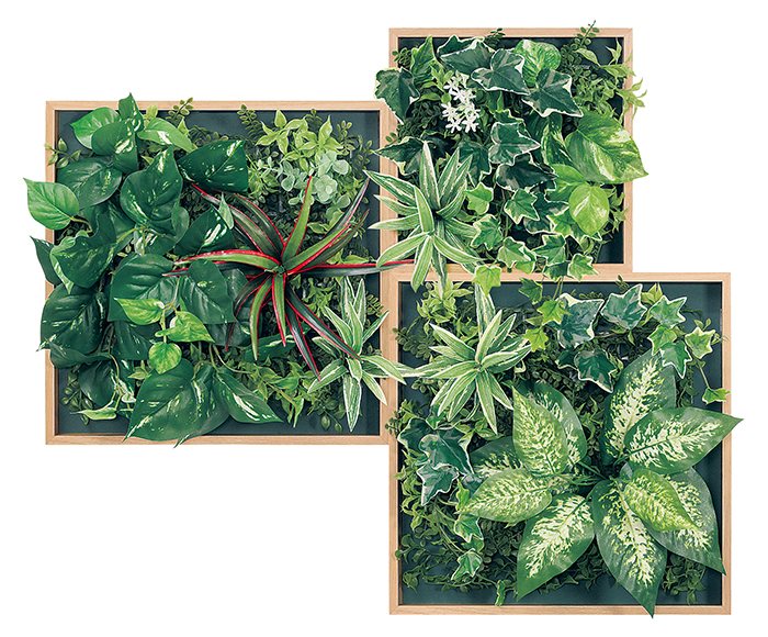 マグネット付き壁面フェイクグリーン 3連タイプ IM-GM1861-WDB6 木目調フレーム アイエム