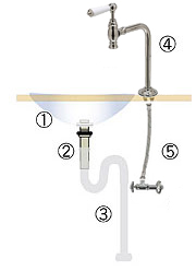 - 水栓金具とボウルや給水パーツ・配管パーツについてこちらでご説明していますのでご確認下さい。